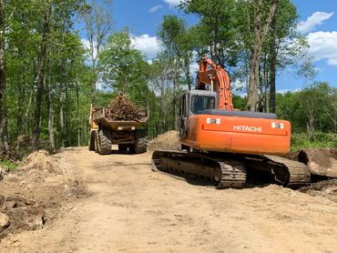 Erick Taylor has been clearing land and doing Farmland Restoration work for almost 2 decades... he's an expert at using an excavator and site truck to clear brush, trees, rocks and stumps to create fields, pastures, and tillable ground. In addition, he's built everything from natural stone farm access roads to finished driveways using base rocks, aggregate, fabric and finished with gravel. He's also built the most impressive rock and stone walls, placing giant rocks with the excavator and chinking by hand.